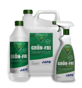 В зависимости от проблемы вы моожете использовать разные средства JAPE, так например, с зелеными наростами, водораслями, мхом или лишайником вам поможет справиться Grön-Fri с черными точками — средства из серии Prick-Fri, с Зеленью и черными точками одновременно — Prick-Fri